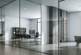 حواجز زجاجية أنيقة تُستخدم لتقسيم المساحات الداخلية في المنازل أو المكاتب، مع الحفاظ على الإضاءة والشفافية والراحة البصرية.
